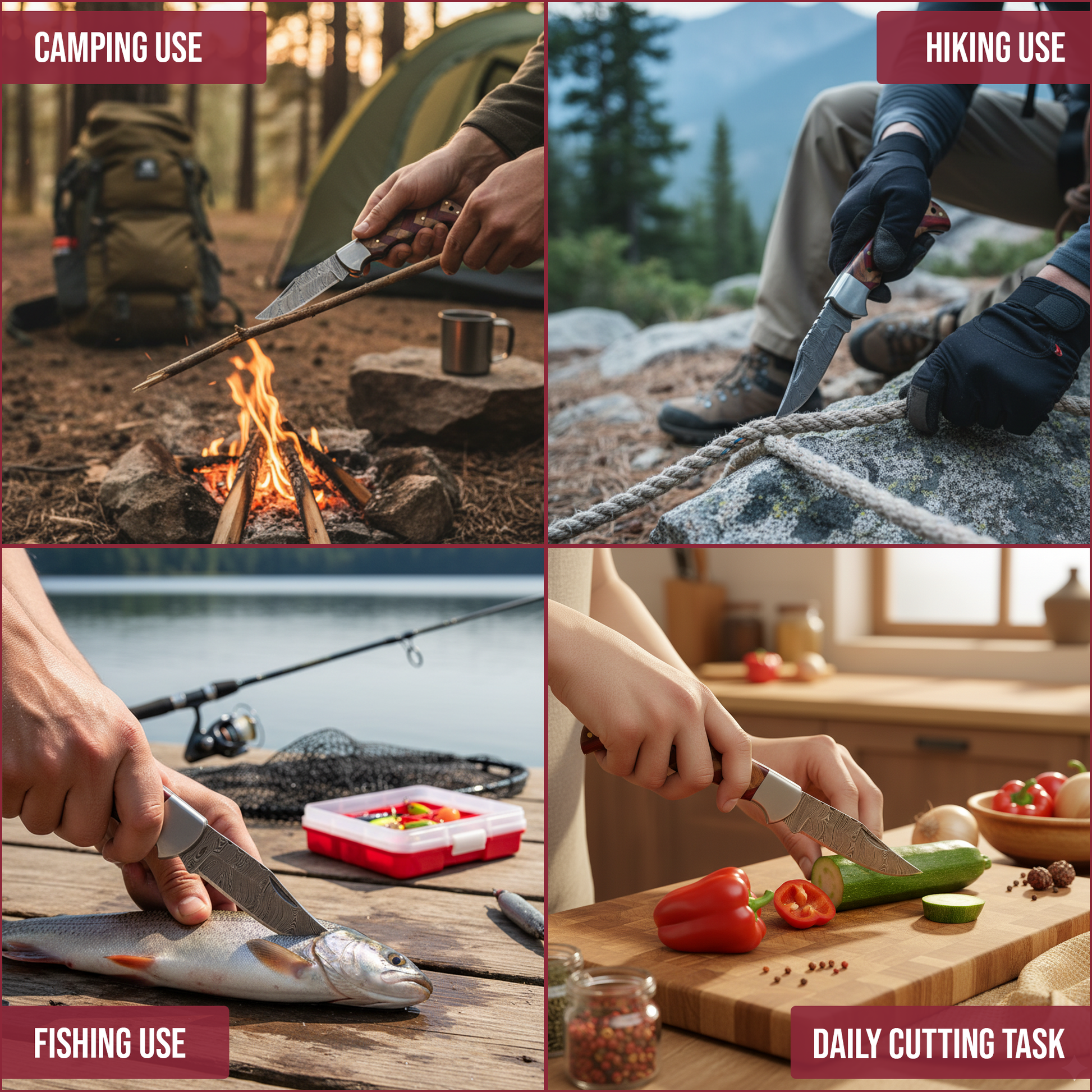 【LOOKS CLASSY, WORKS SHARPLY】- This damascus steel folding knife gone through high temperatures and excellent edge retention treatment, in its making, for improved longevity. Sharp & large enough for high performance work without causing hand fatigue