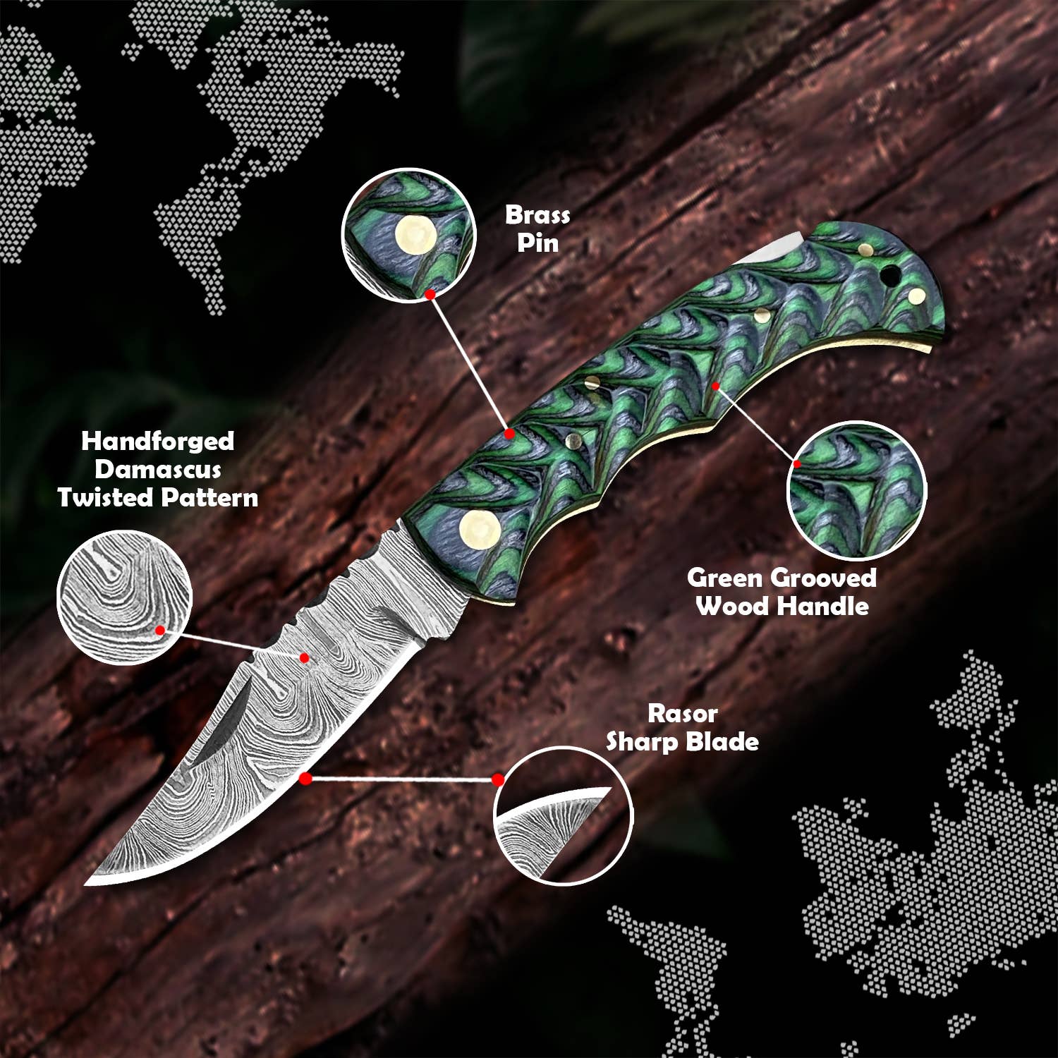 【SOLID, SHARP & APPEALING】- Truly hammer forged damascus knife; composed of 1080 and 15N20, folded 5 times, starting from 9-layers into a twist pattern of 300 layers of damascus steel. Shatter proof to withstand any cutting task