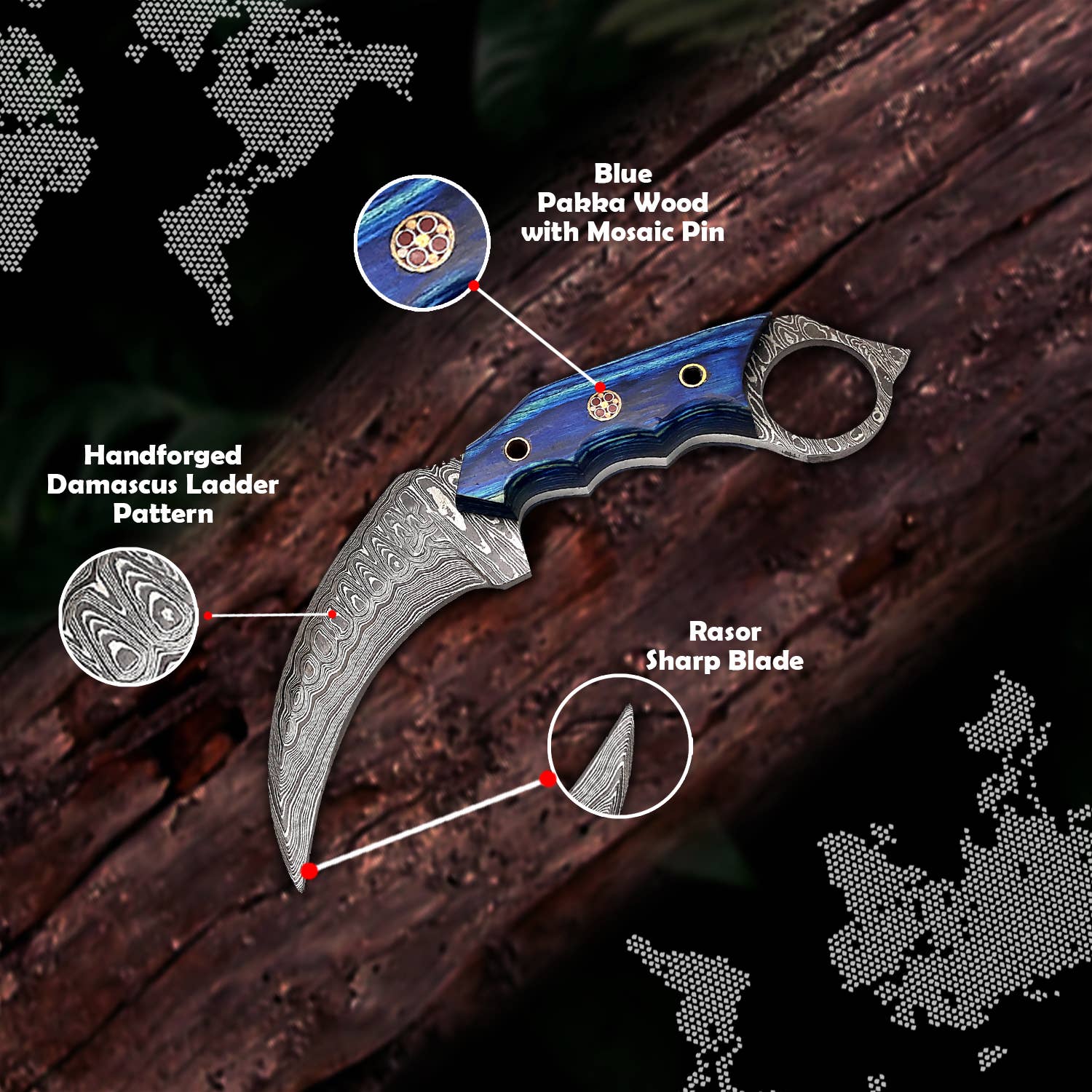 【SOLID, SHARP & APPEALING】- Truly hammer forged damascus knife; composed of 1080 and 15N20, folded 5 times, starting from 9-layers into a ladder pattern of 300 layers of damascus steel. Shatter proof to withstand any cutting task
