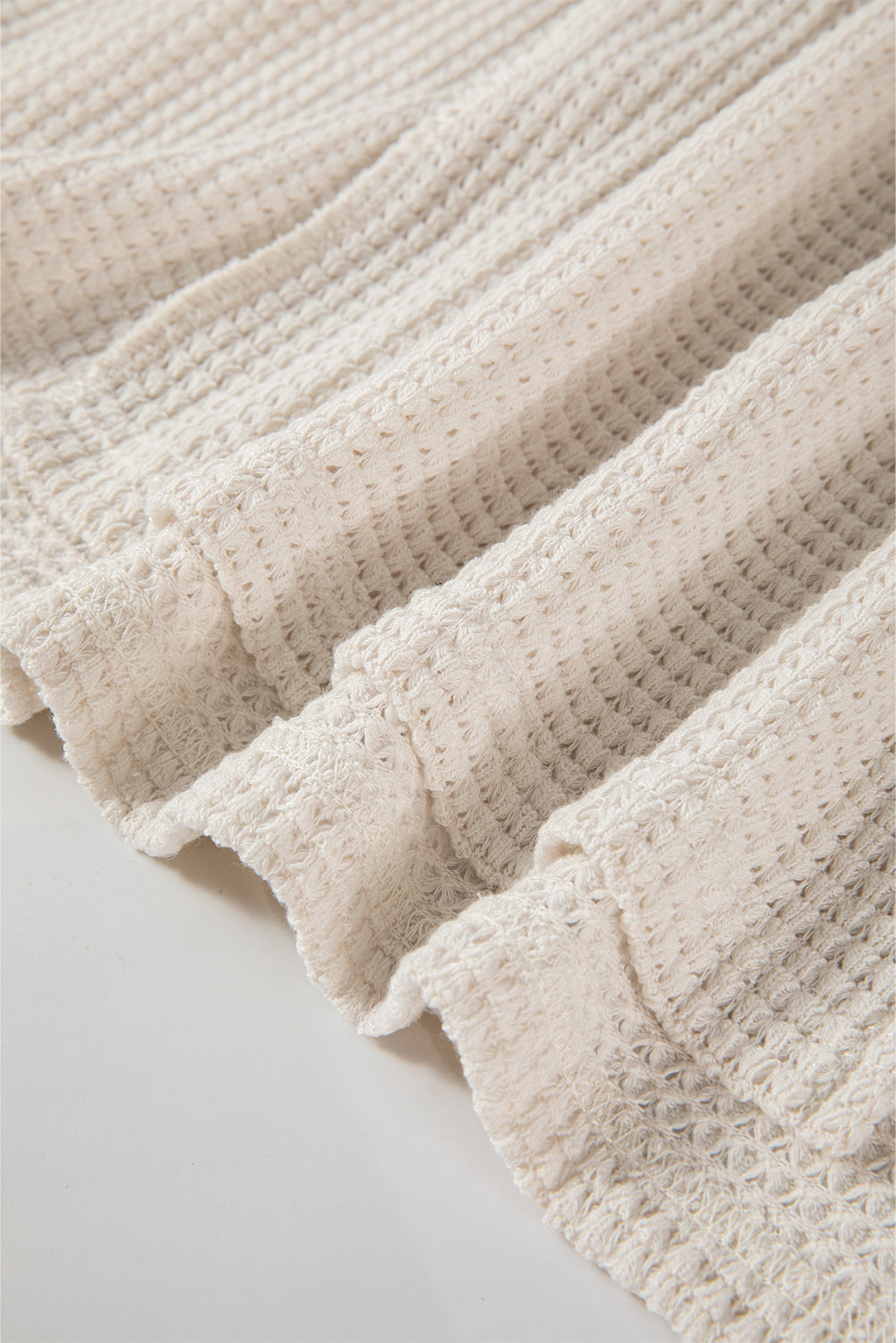 The waffle knit texture provides visual interest, ideal for casual outings.