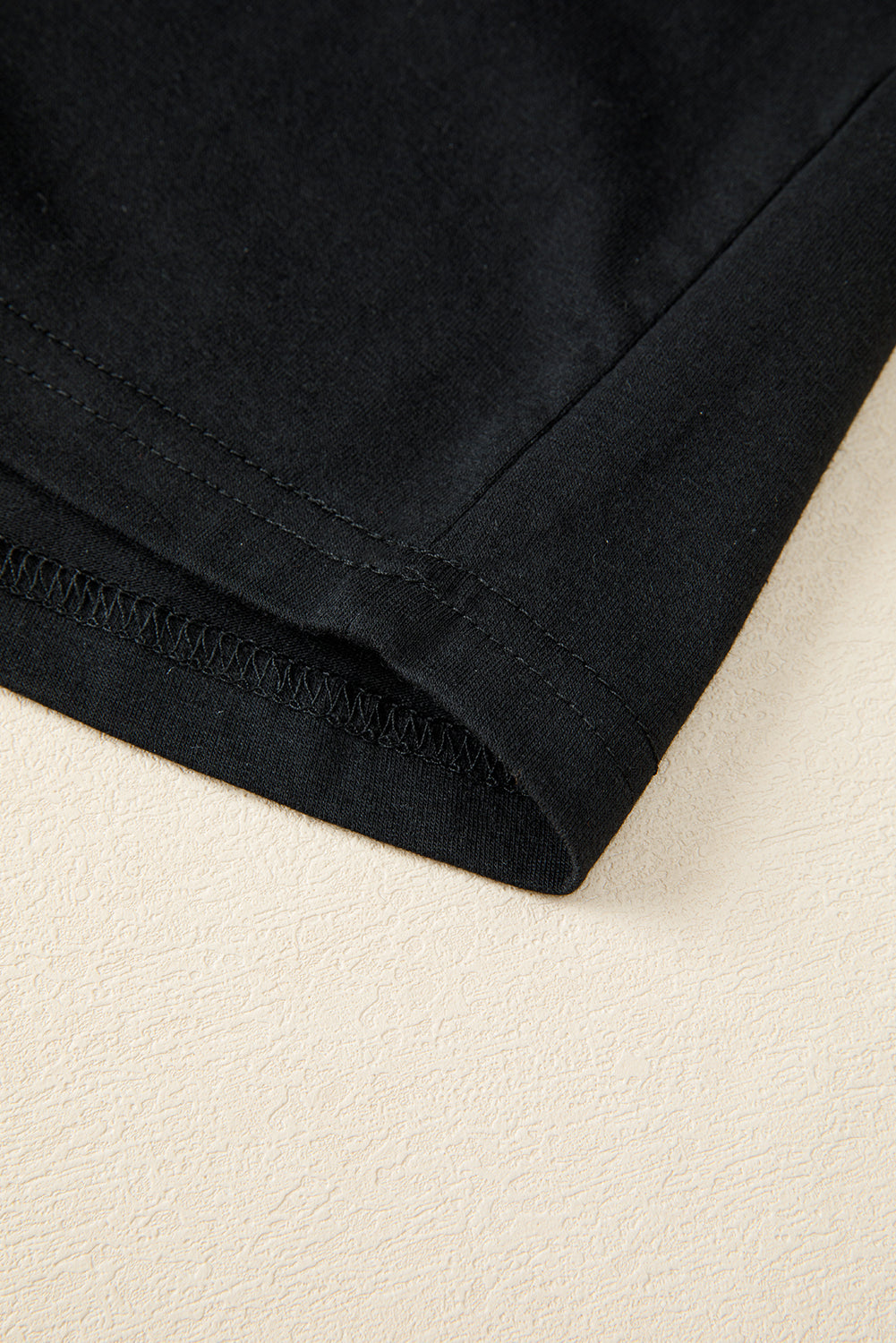 Black Glitter Ghost Pattern Crew Neck Halloween T Shirt