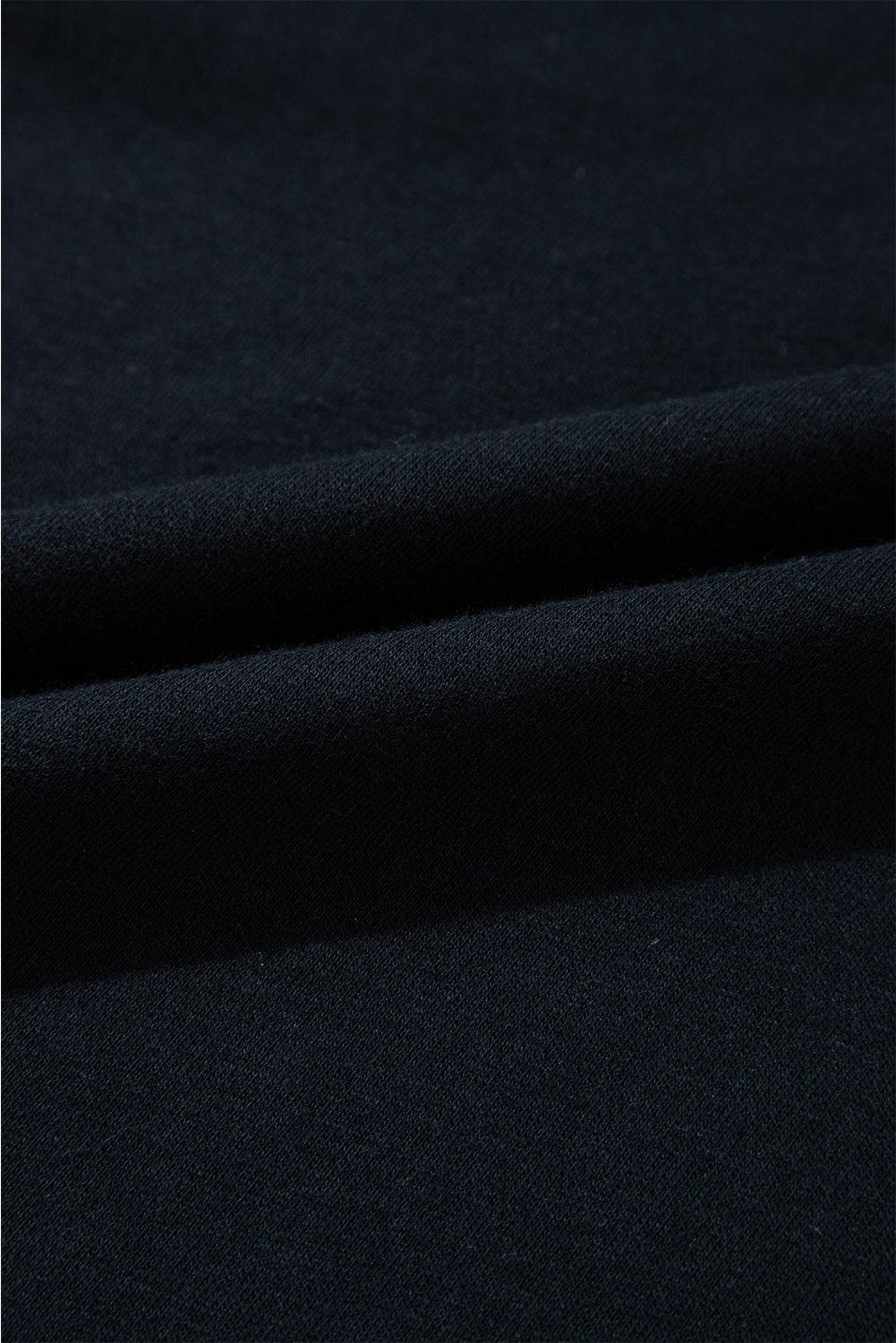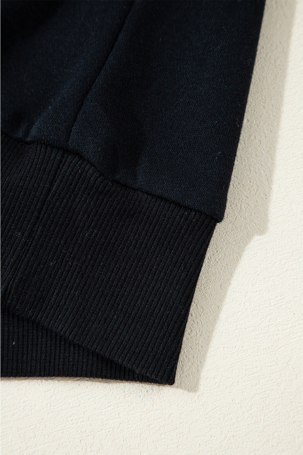 Black Solid Color Rivet Stud Raglan Sleeve Hoodie with Pocket