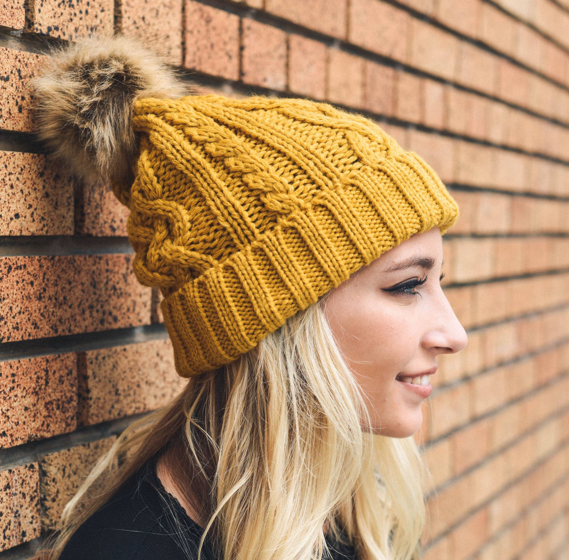 Cable Knit Beanie With Faux Fur Pom - Styled for Panache ❄️