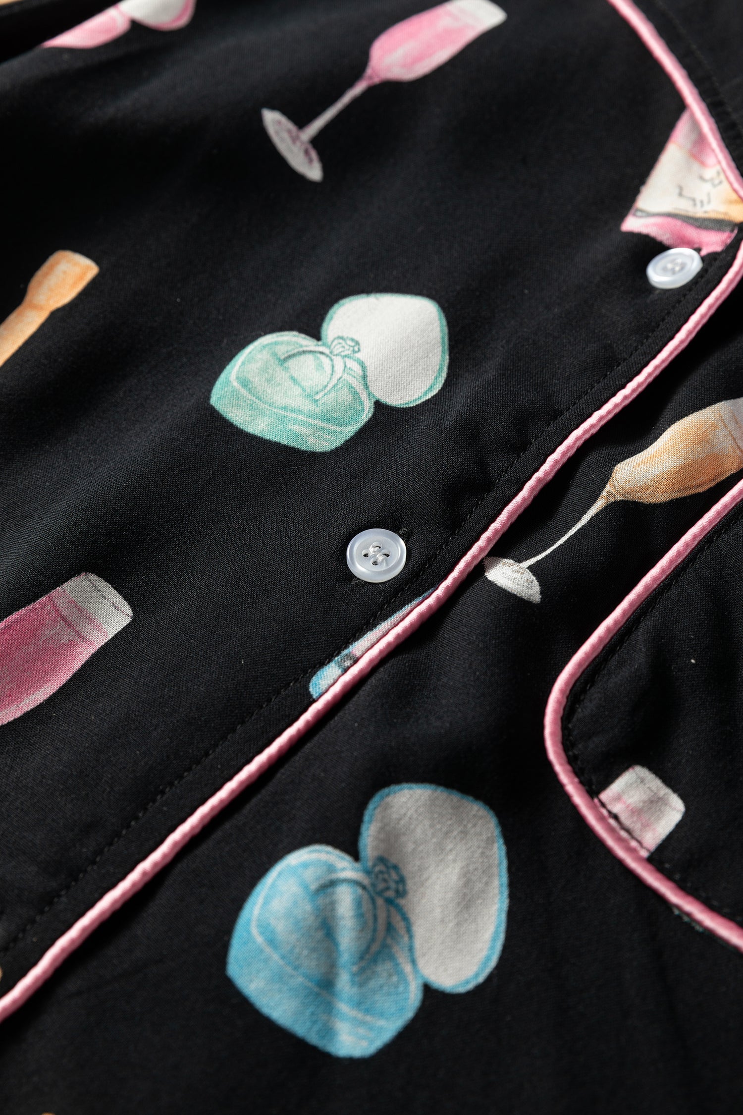- Featuring wine glass prints, this set adds a touch of festive spirit to your sleepwear.