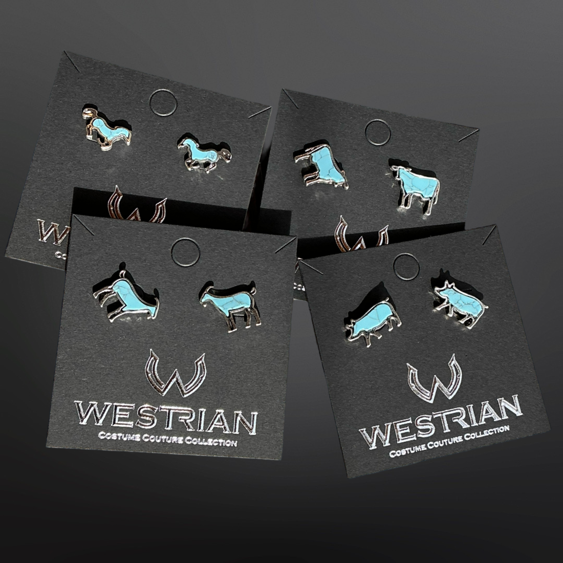 Farm Animal Faux Turquoise Earrings Cow Horse Pig Goat