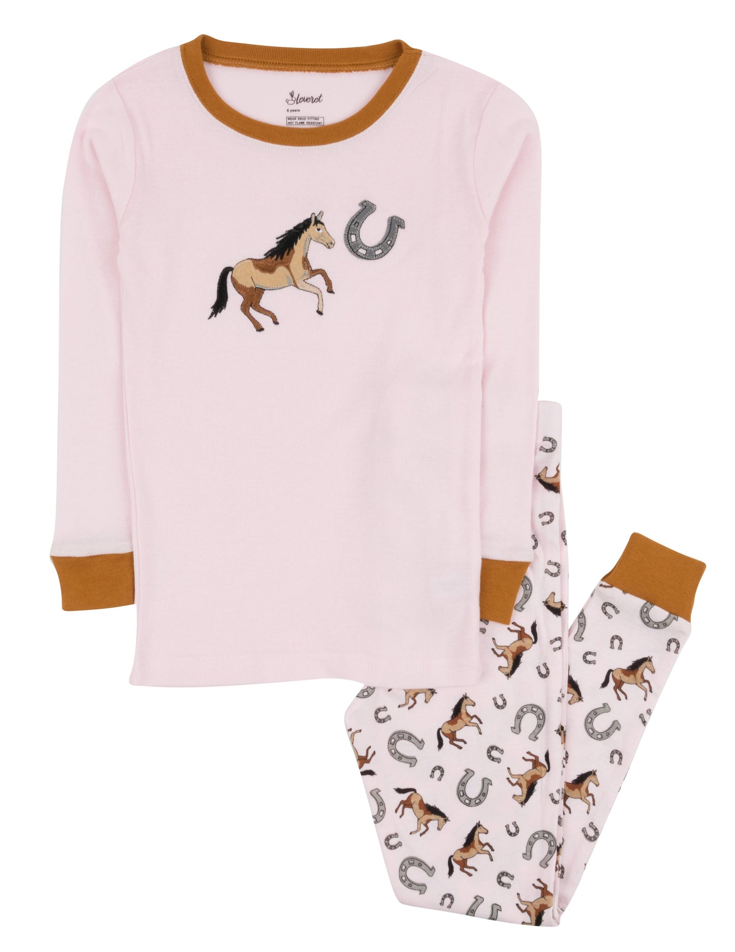 Kids Two Piece Cotton Pajamas Pink Horse