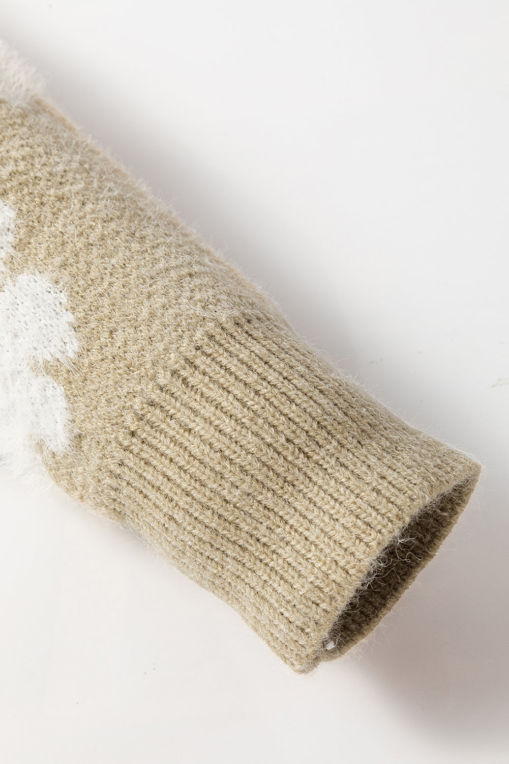 - Stylish floral pattern adds a pop of color to this trendy sweater.