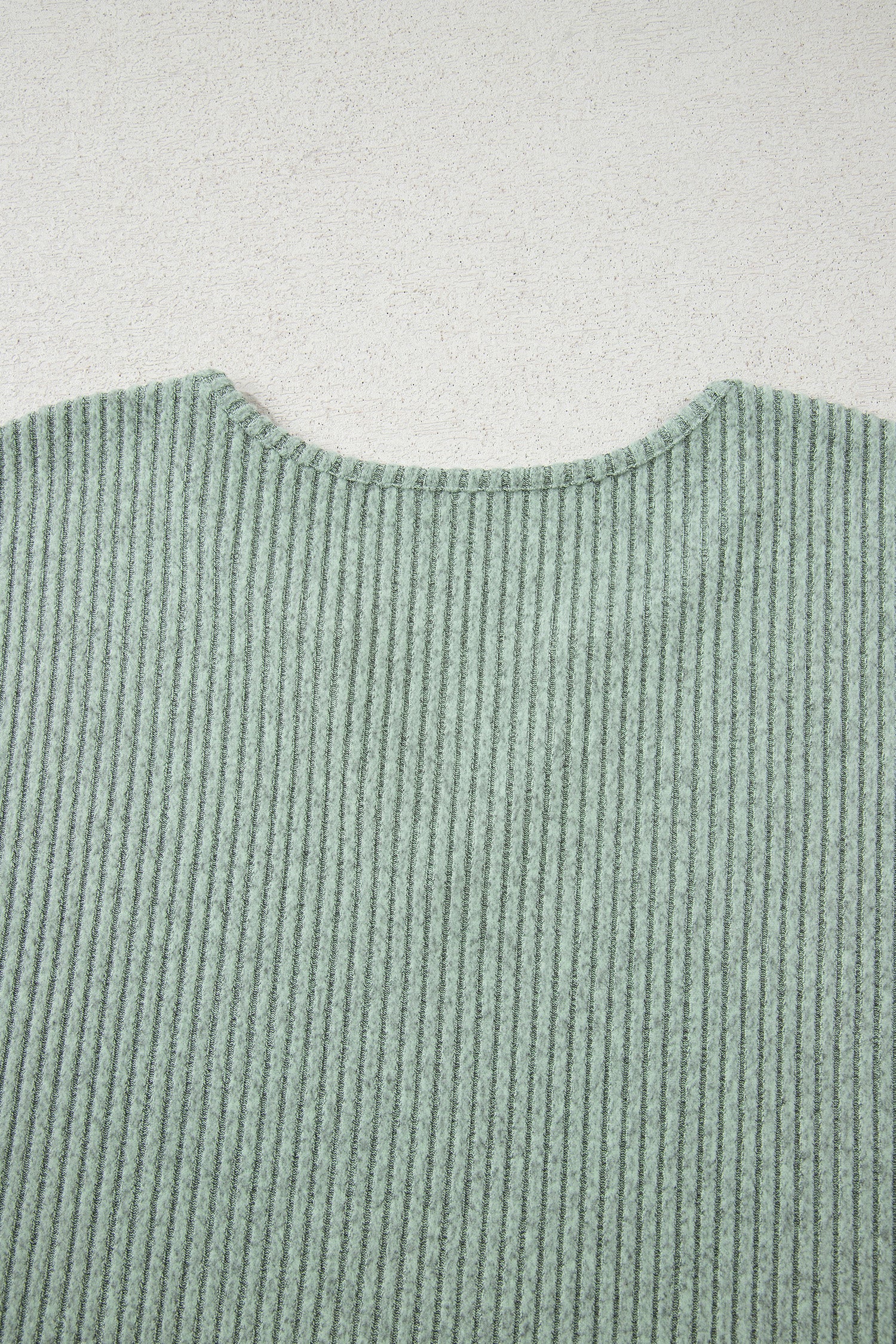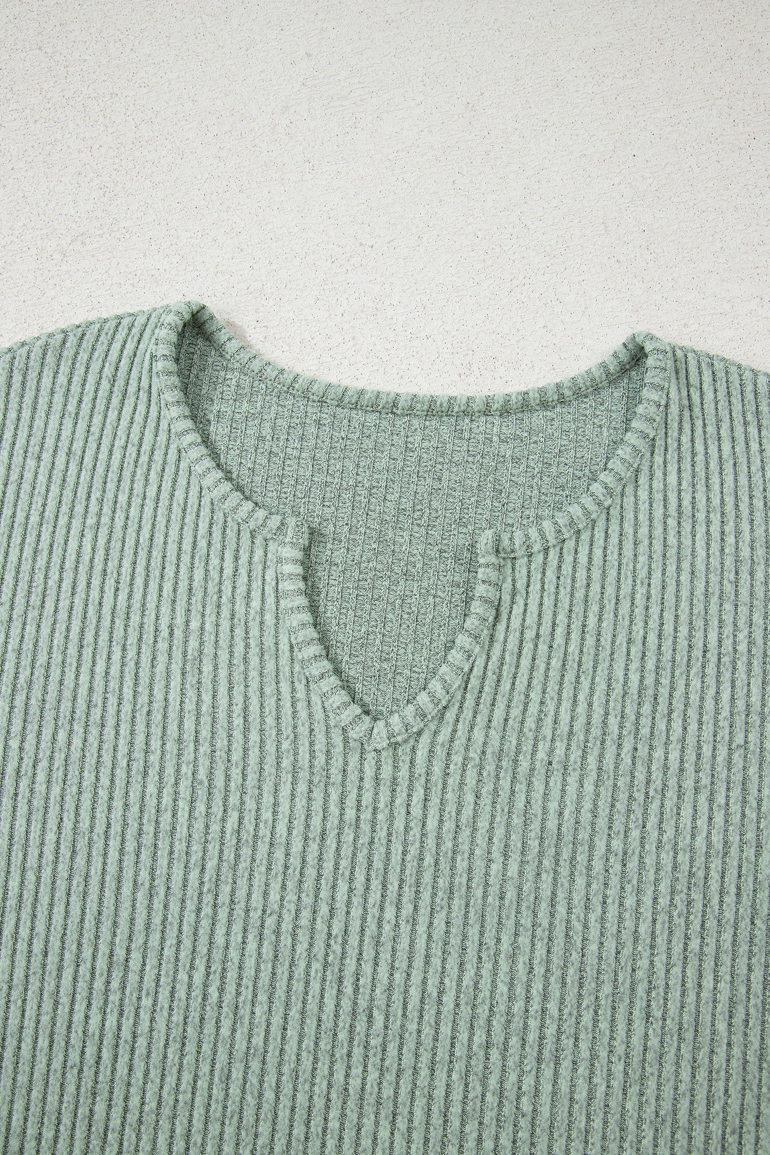 Racing Red Ribbed Notched Neck Knit Long Sleeve Leggings Two Pieces Lounge Set