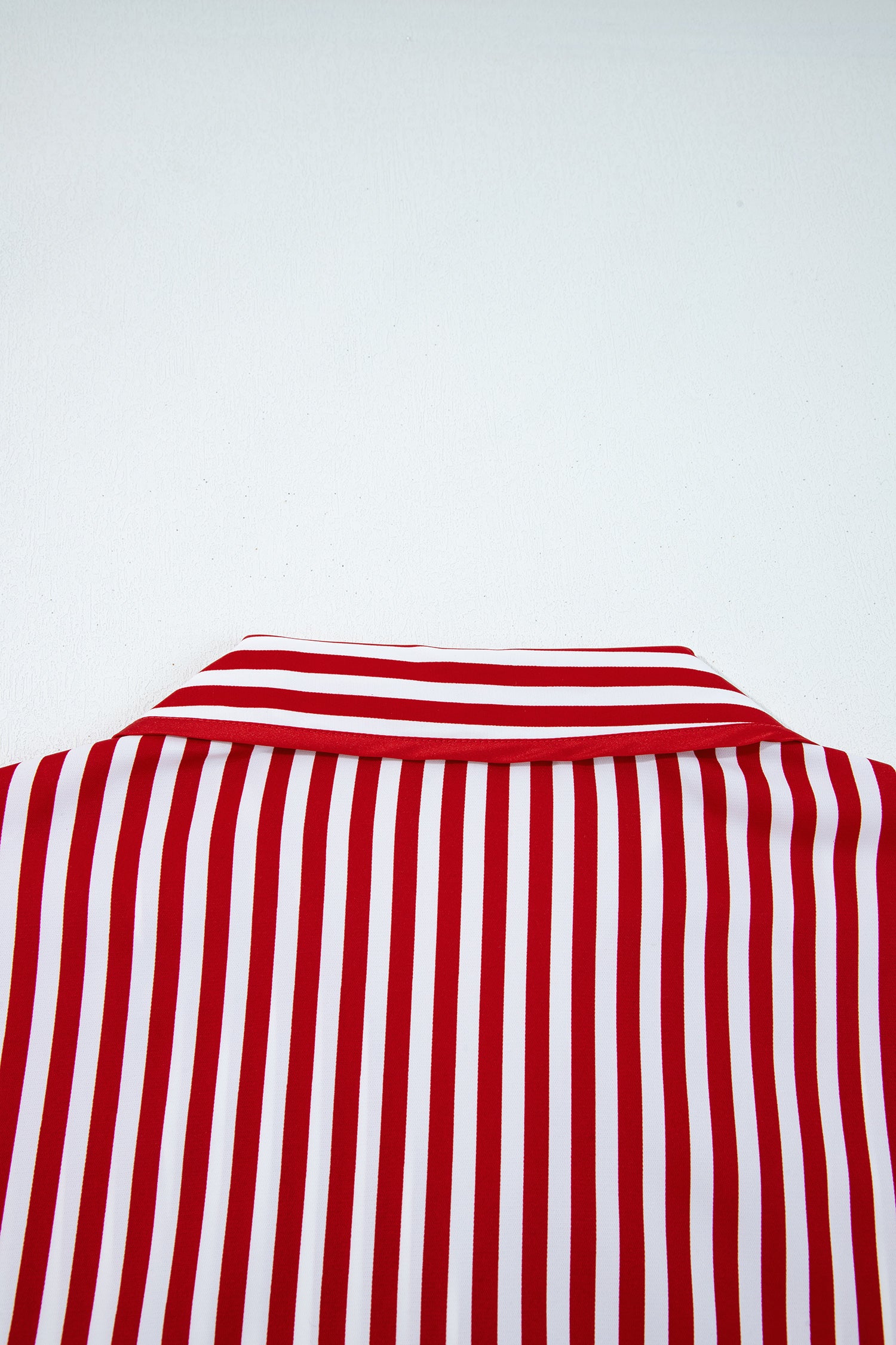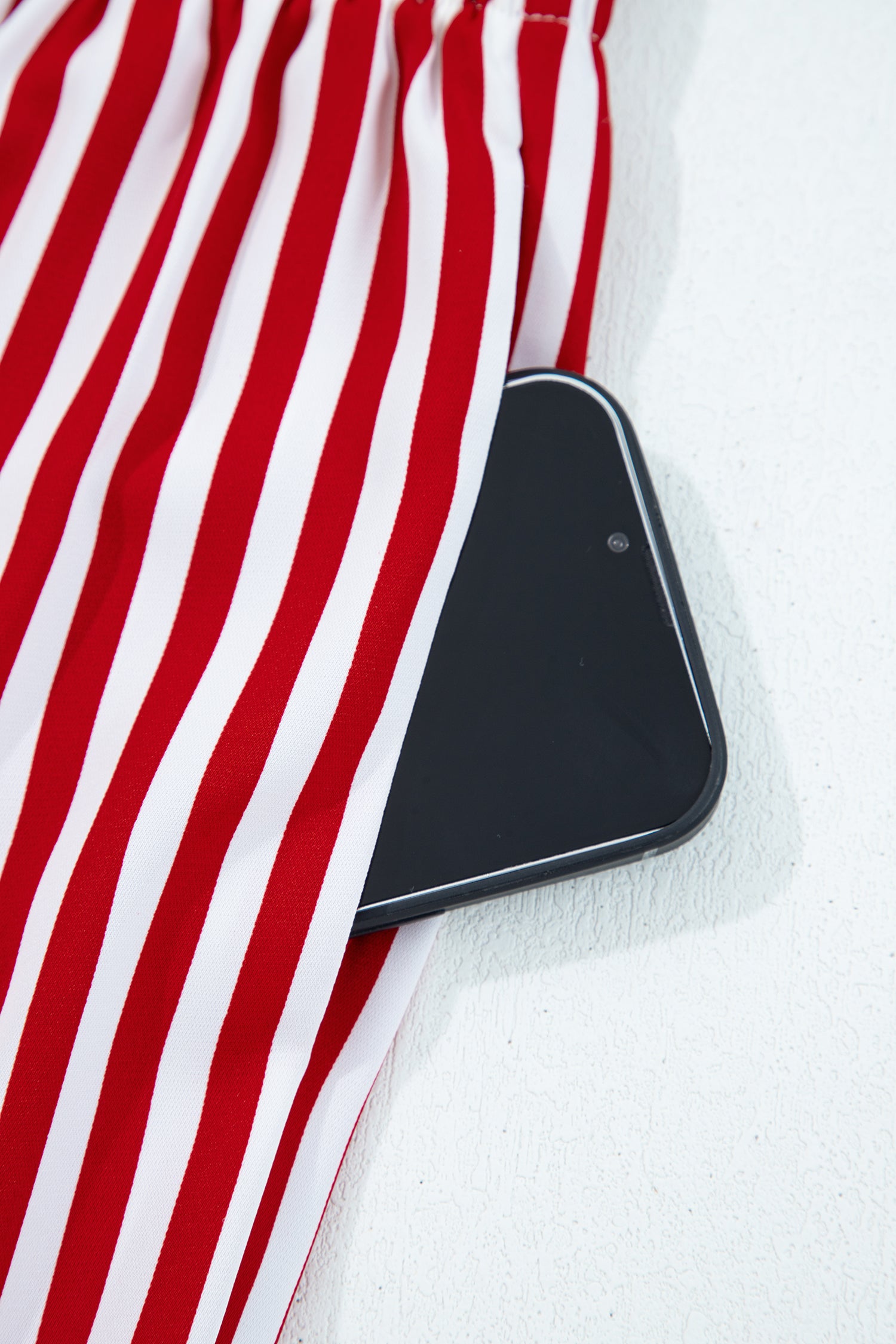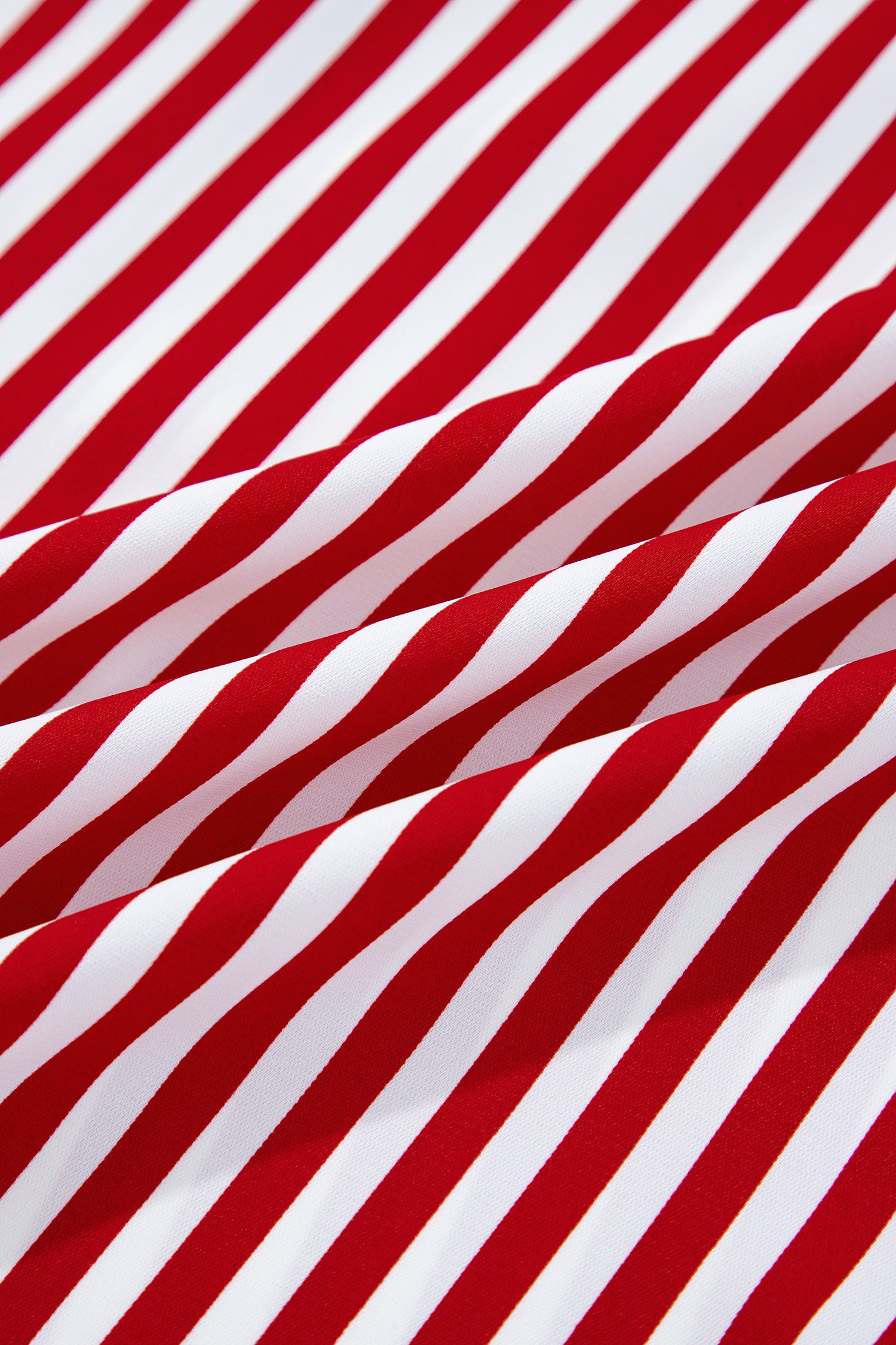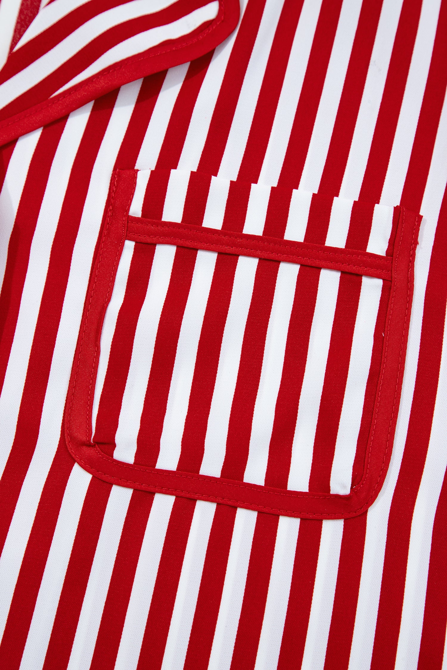 Red Stripe Contrast Velvet Trim Bow Knot Waist 2pcs Pajama Set