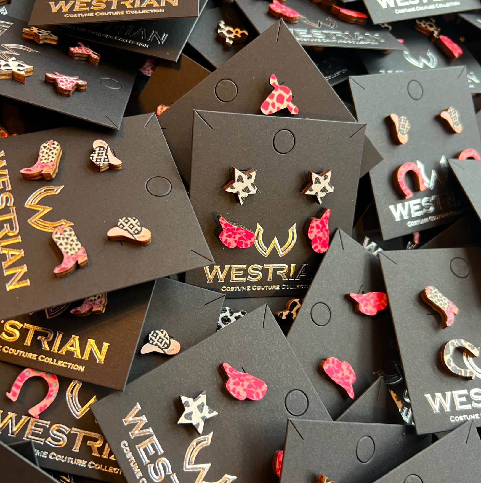 Cows, Boots, Cowgirl Hats, Stars, oh my! These are so stinking cute! Two sets of wood earrings on each card. Assorted styles as pictured.